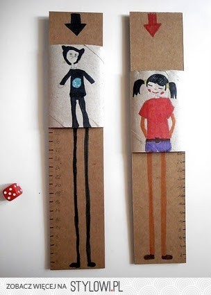Acompanhe o crescimento dos seus filhos fazendo divertidas réguas verticais de papelão. Deixe-os fazer o seu auto-retrato em rolos de papel higiénico e coloque nas réguas. Conforme os seus filhos vão crescendo, os rolos vão subindo na régua.