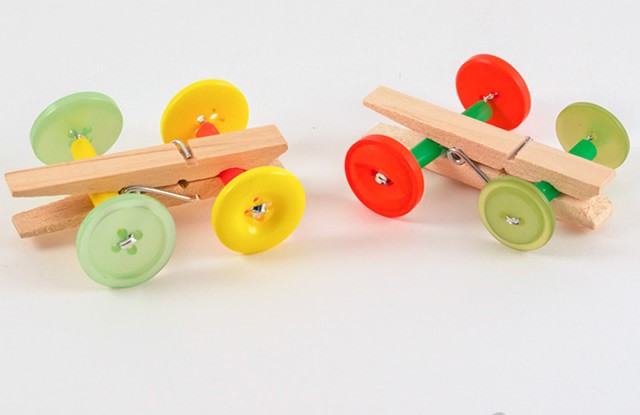 Aproveite botões que tenha por casa e una-os a uma palhinha ou palito (cuidado com os bicos). Pode usar um fio ou um arame para esta junção. Prenda numa mola de roupa e está pronto!