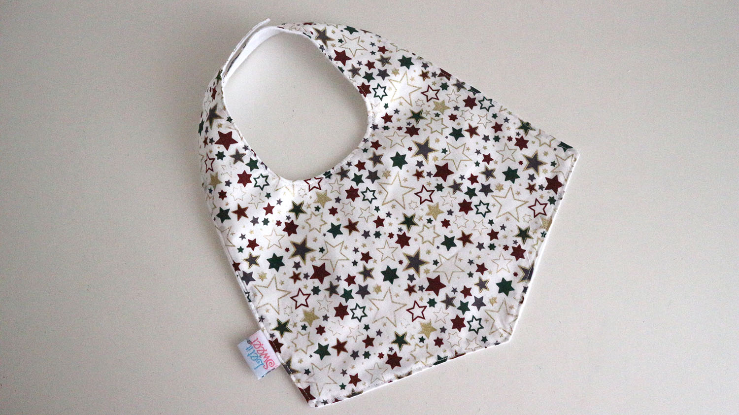 Uma babete feita com tecido 100% algodão e impermeável.