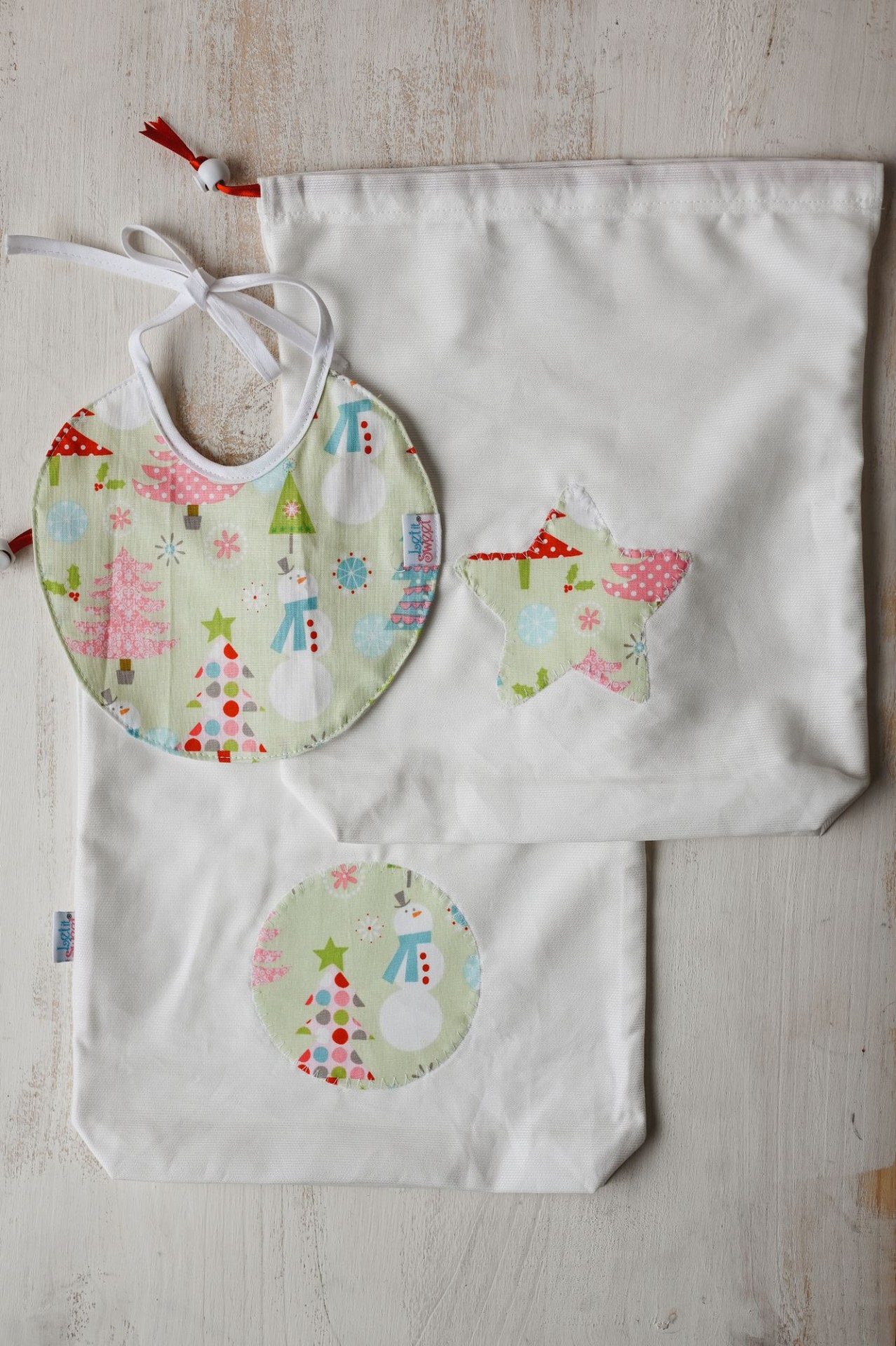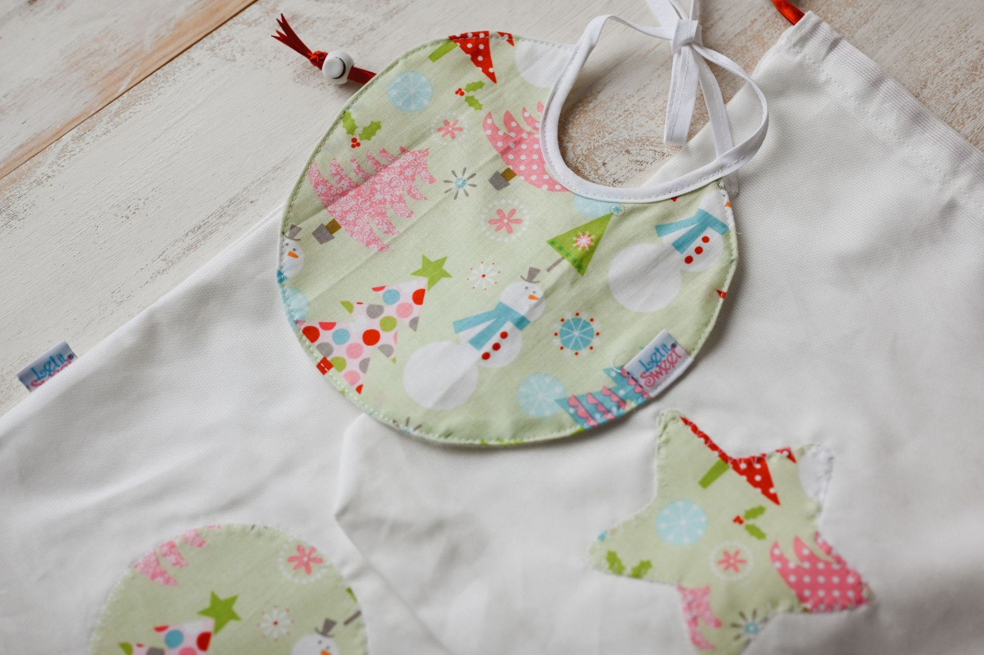 Babete de fitas com um lado em turco impermeável, 100% algodão.
