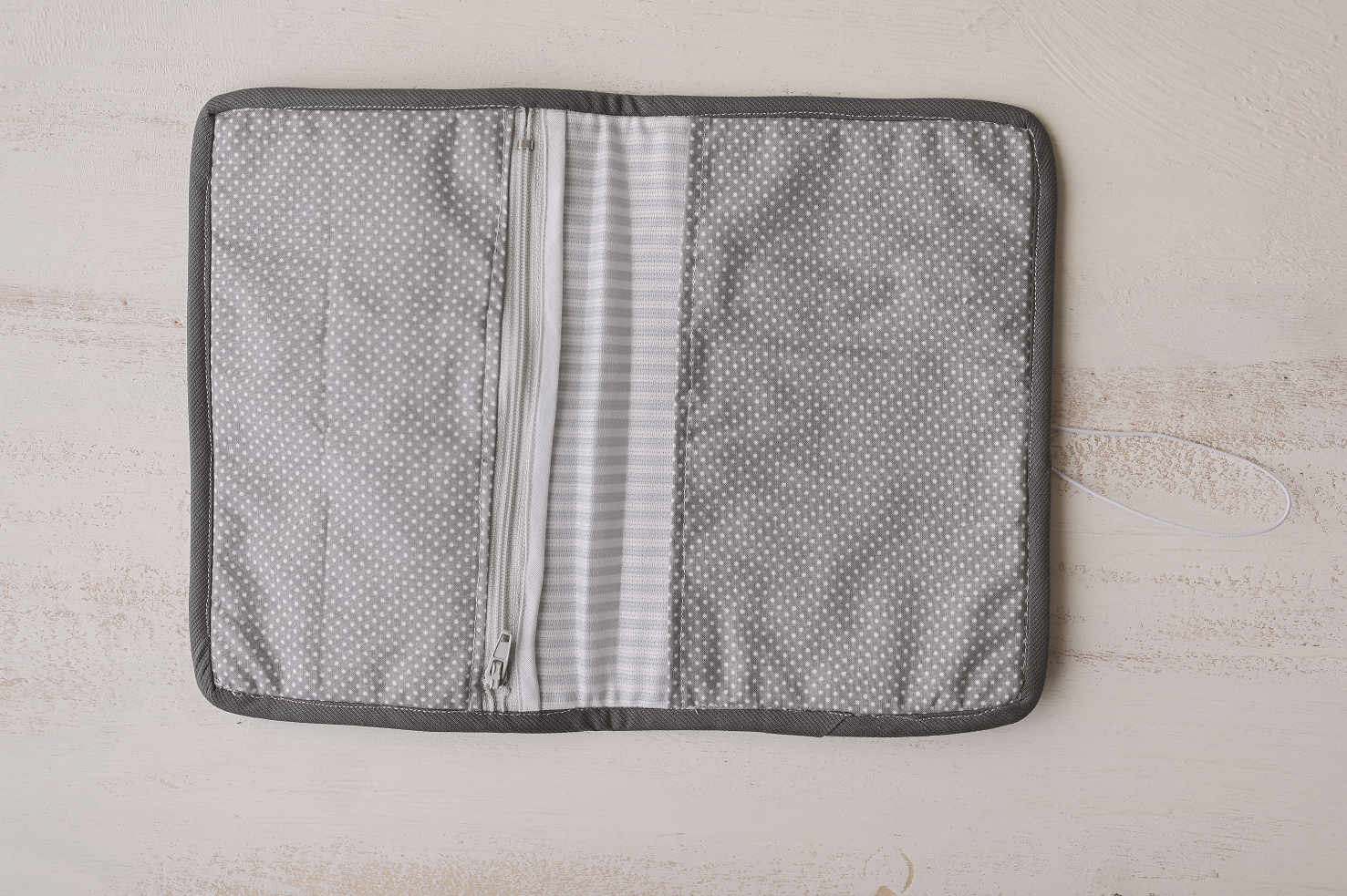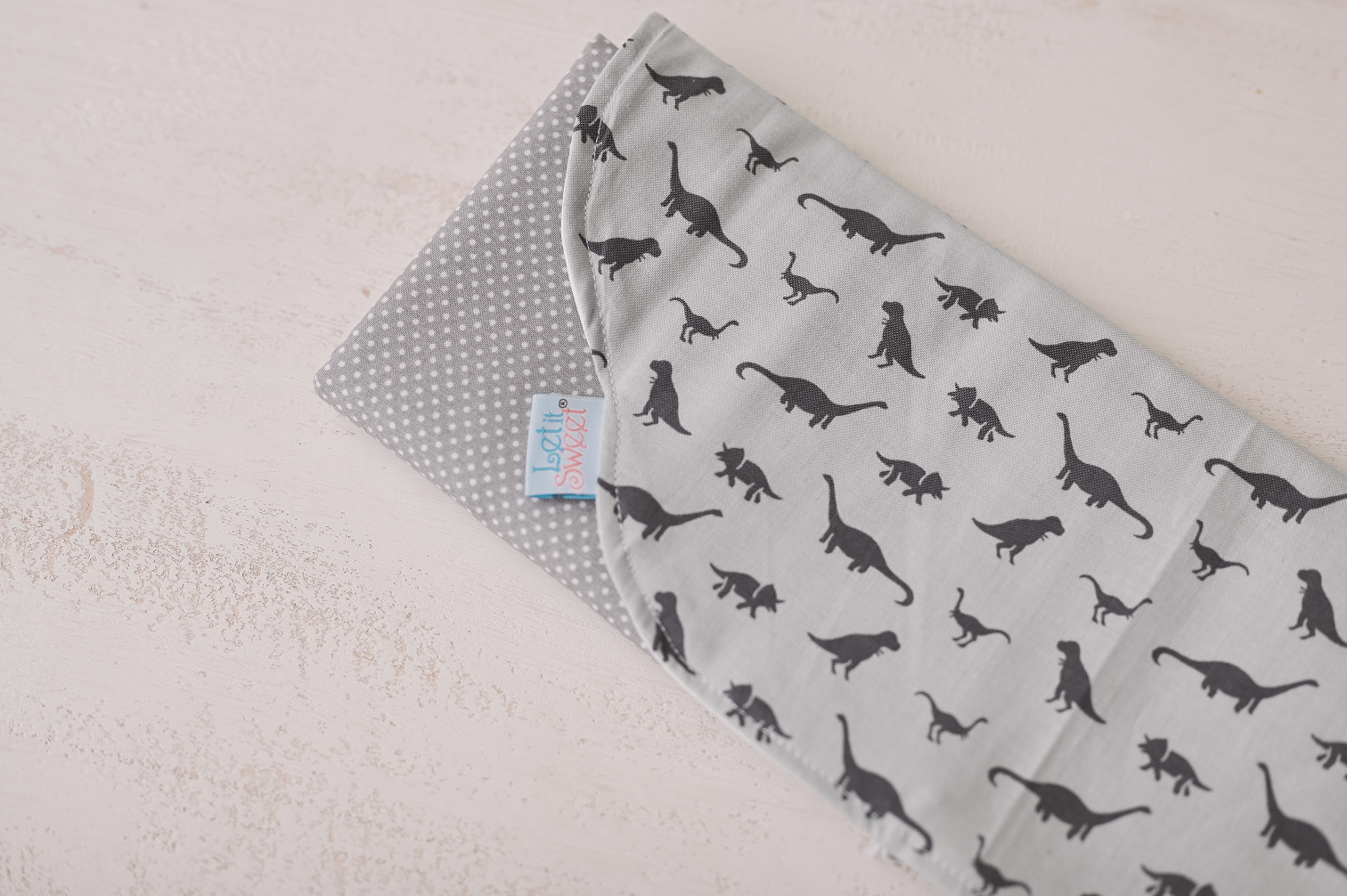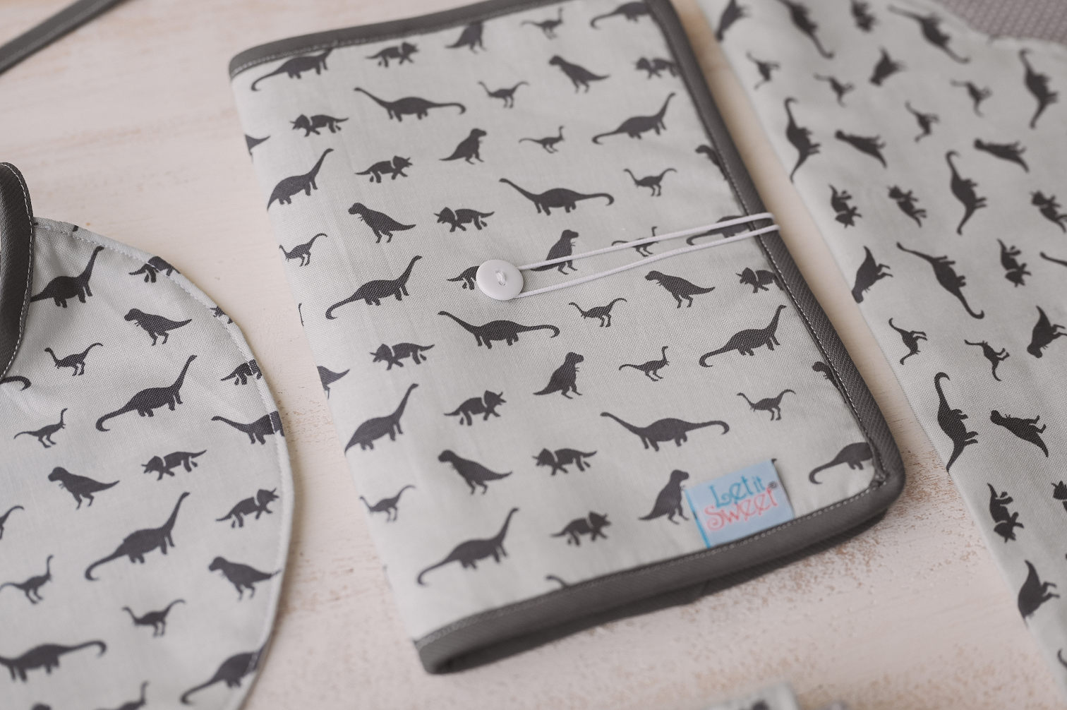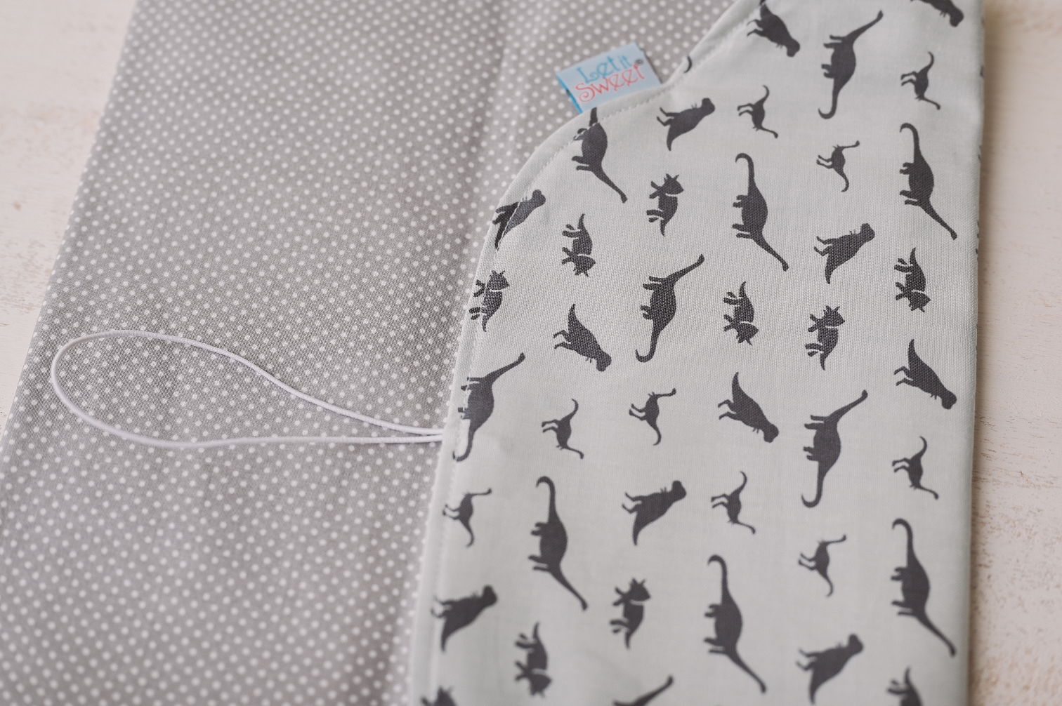 Produtos 100% algodão, muda-fraldas e babete com um lado impermeável.