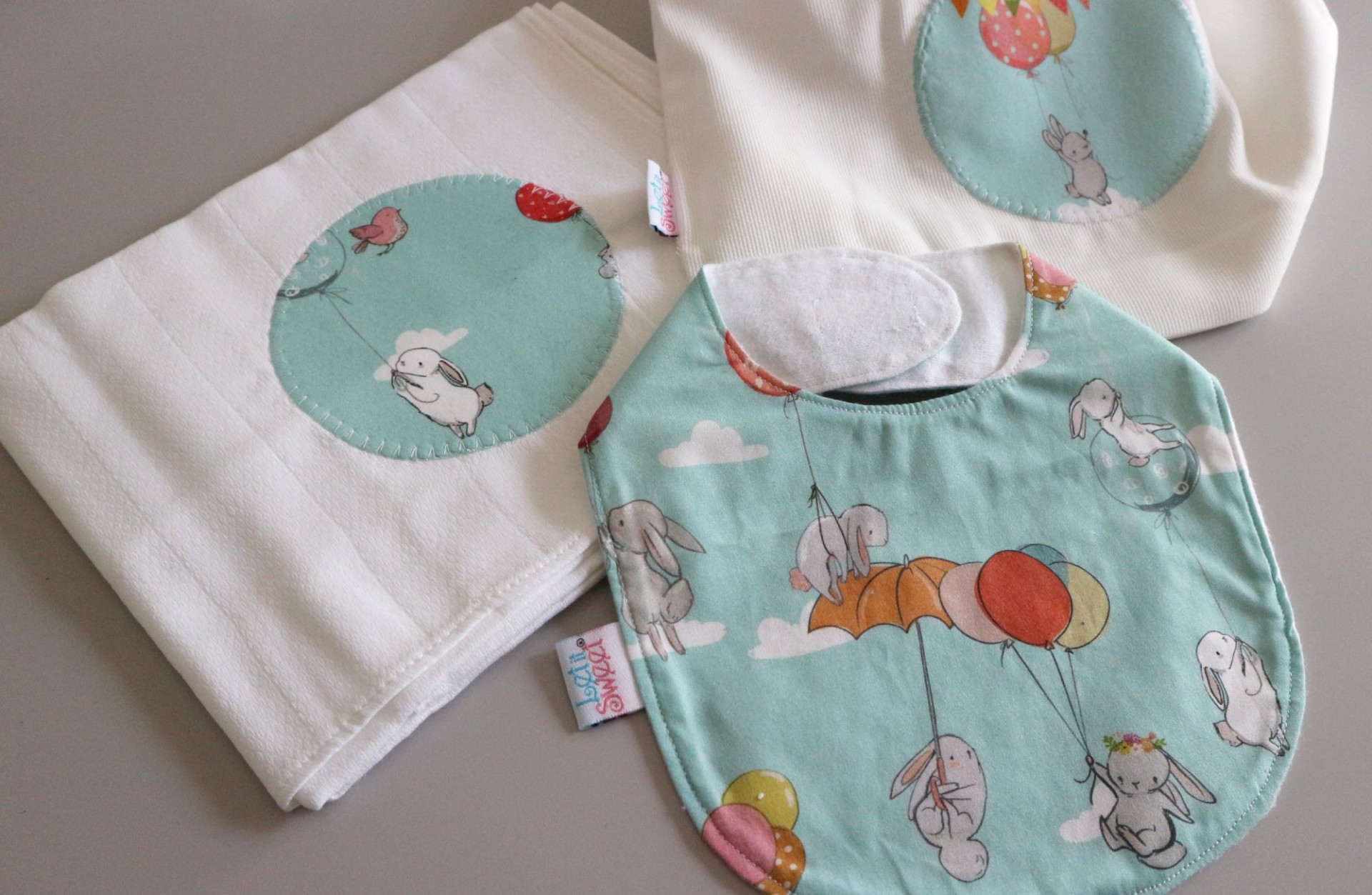 - fralda dupla com aplicação de tecido,