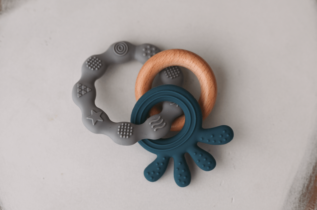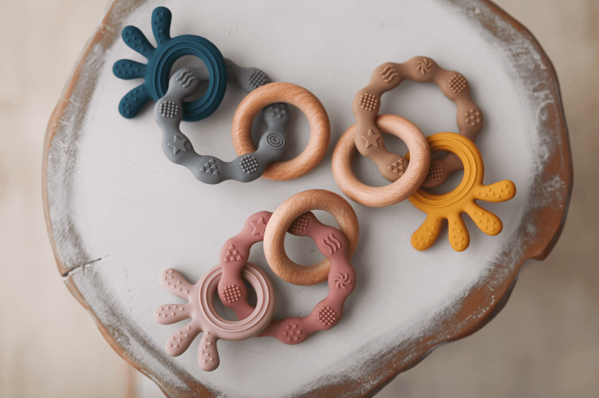 Aros em silicone e aro em madeira natural, sem vernizes ou tintas (0% químicos)