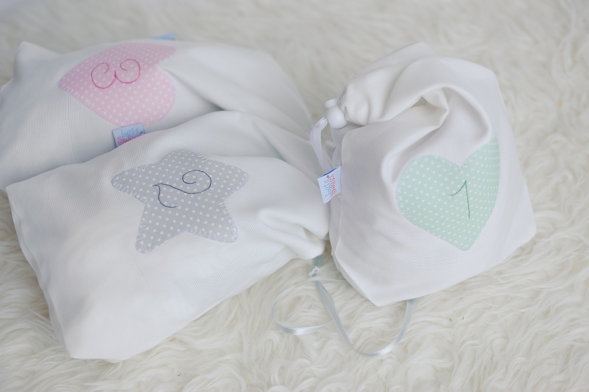 Pode ter uma aplicação em forma de coração ou estrela, simples, com numeração ou o nome do bebé.