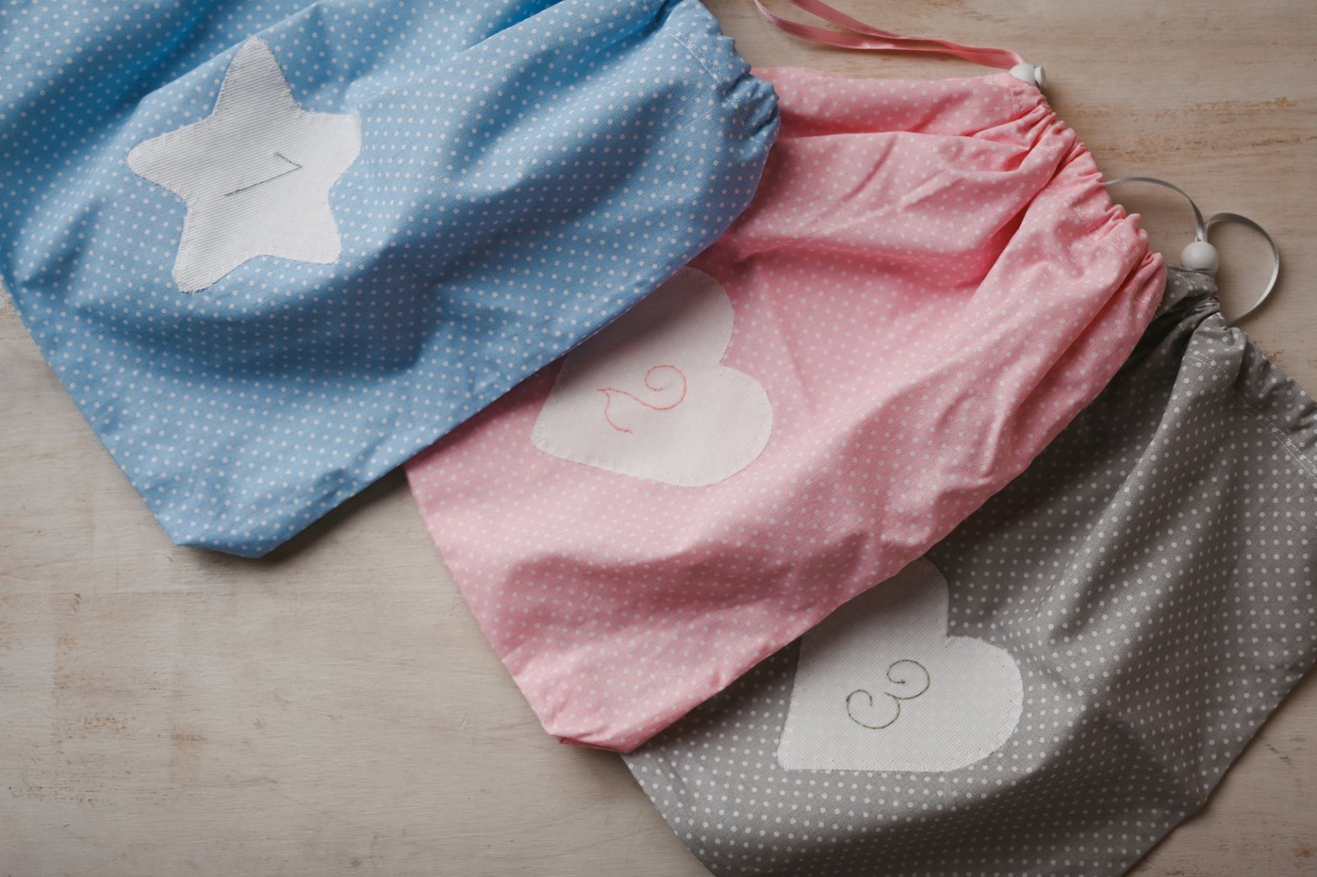 Um prático saquinho para guardar as mudas de roupa do bebé, os produtos para a muda das fraldas, necessaire, e muito mais. Tem um travão para facilitar o fecho e abertura do saco.